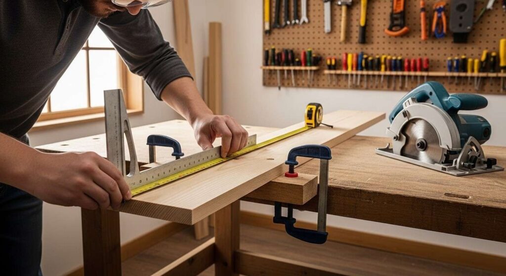 - Measuring tape and carpenter’s square